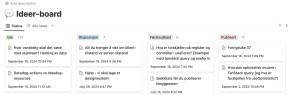 For Ä ikke glemme alle ideene, har jeg lagd et system for Ä fange dem. I Notion har jeg en tavle bestÄende av fire kolonner: ide, disposisjon, fÞrsteutkast og publisert: