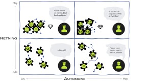 1. Ansvarsforståelse for teamet er viktig når man får vesentlig økt myndighet. Et faktum det kanskje snakkes litt for lite om, er at mange team ikke er modne og klare for å forvalte det ansvaret som følger av å jobbe som et myndiggjort team. Selv om vi balanserer autonomien til teamet med retning, så er det betydelig økt frihet sammenlignet med et leveransestyrt team. Med denne friheten følger ansvar.