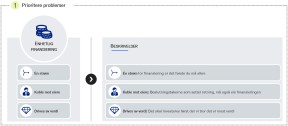 Finansieringen skal være i tråd med der vi tror det er størst verdi å hente. Når vi snakker om finansiering tenker man sjeldent på at dette er prioritering. Vi tenker gjerne på det som en rammebetingelse, hvor vi gjør påfølgende prioriteringsarbeid innenfor disse rammene. Paradoksalt nok representerer finansiering den største prioriteringen av hvilke problemer man skal løse av dem alle: Har du ingen finansiering så får du ikke adressert noen problemer i det hele tatt! Det samme gjelder dersom man har finansiering og denne skaleres opp eller ned: En oppskalering gir deg muligheter til å adressere flere problemer, mens en nedskalering gjør at du får adressert færre problemer. Dette forklarer hvorfor finansiering er en essensiell del av å prioritere hvilke problemer man skal løse. Vi skal se nærmere på tre aspekter ved enhetlig finansiering, som understøtter den produktorienterte modellen: