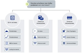 Å løse problemene, derimot, er noe helt annet. Gitt et definert problem vi skal løse, med tilhørende strategisk kontekst, så er det plutselig et langt mer analytisk arbeid vi har foran oss. Ja, det er i noen grad forankring her også, selvfølgelig, men av natur er ikke dette på langt nær like politisk som å prioritere hvilke problemer som skal løses her og nå.